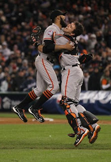 For the second time in 24 months I was in the crush of excitement at the Giants victory parade down Market Street in San Francisco. I stood on a stool and leaned on a tree for balance at McAllister. I saw The Beard Wilson who stood out in a pastel blue shirt on a motorized cable car but to really see the parade and partcipants up close I watched my recording later. At the office Halloween party in the afternoon there was live coverage of the speakers at City Hall until 3 p.m. and I was glad to catch that around 2:30. It's very convenient to feel the excitement of the parade only a couple blocks from the office. Market and Mission were closed all day to 9th Street so we had no mail delivery. It's been an exceptional month. I love October. Orange and black are the perfect colors ever.