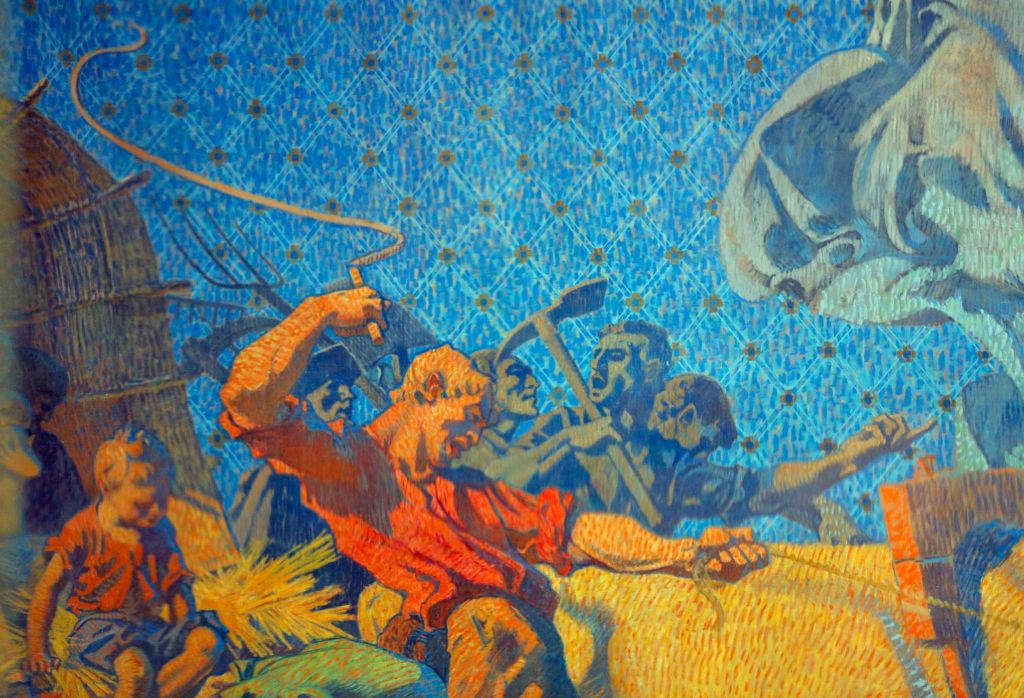 The "Atlantic and Pacific" oil painting by William de Leftwich Dodge at the de Young Museum in San Francisco, California, on Wednesday, July 22, 2015. The mural, stretching nearly 50 feet long, depicts an allegory of the coming together of two peoples by way of the Panama Canal, which the opening of the painting was created to celebrate.